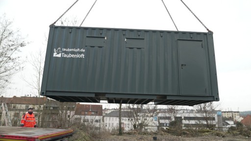 In Neunkirchen gibt es seit längerem Probleme mit Tauben in der Innenstadt. Die Tiere vermehren sich unkontrolliert, auch die alten Taubenhäuser sind marode. Nun hat die Stadt reagiert und ein neues Taubenhaus aufgestellt. Hergestellt aus einem Container.