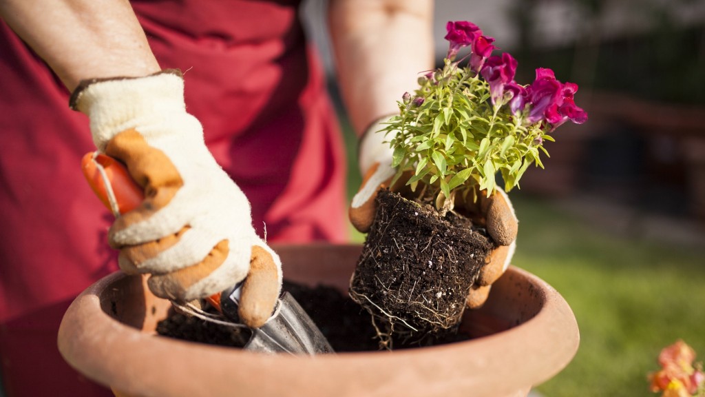 Eine Person füllt Erde in ein Pflanzgefäß