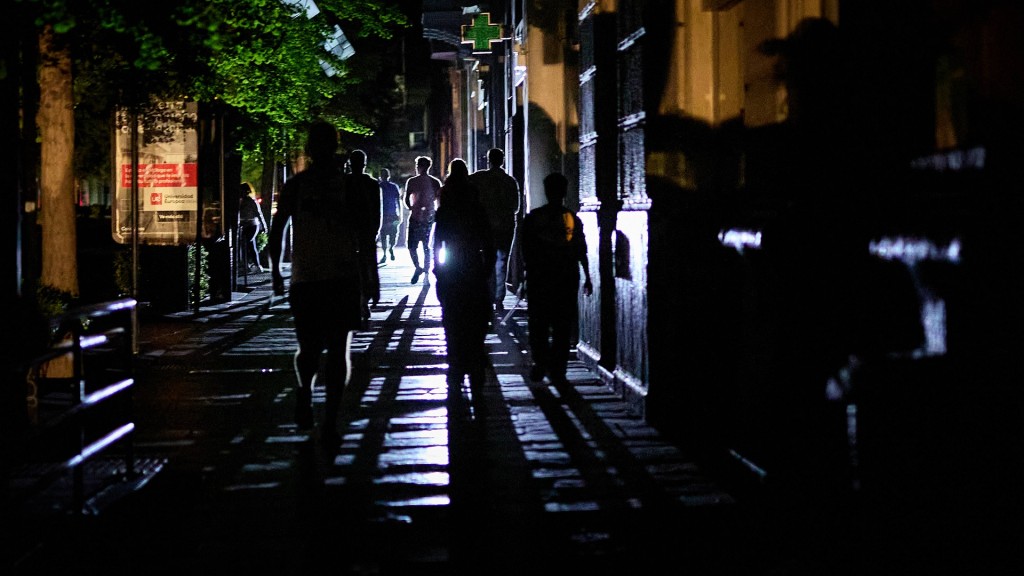 Stromausfall. Menschen in einer dunklen, unbeleuchteten Gasse der Stadt